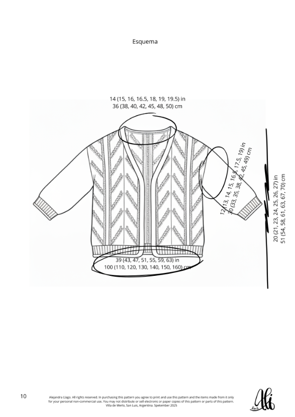 Este patrón cuenta con los siguientes talles: S (M, L, XL, XXL, 3XL, 4XL). Elegir el talle de acuerdo a tus medidas y preferencias, si estás entre dos talles elegir el más grande. Esta prenda contempla una holgura positiva de 15 cm.
